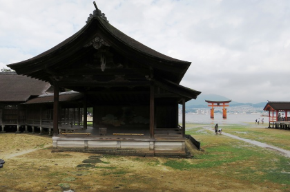 写真は厳島神社の能舞台です。満潮時には「海上に浮かぶ」能舞台になります。