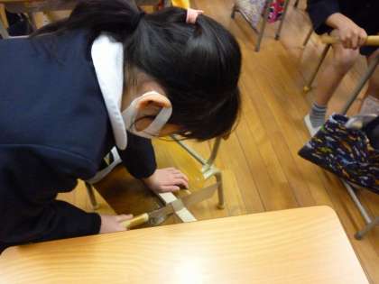 ゆっくり、あせらず、軽い力で、でも集中して、みんな、真剣に木を切っていました。