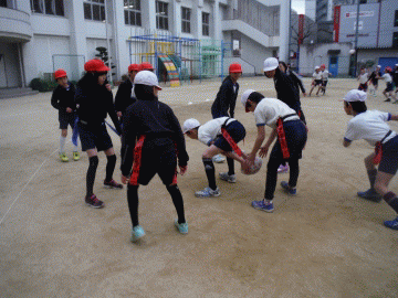 隣のコートでは,ロングパスが決まって,妙に盛り上がっている。フィールドを駆け抜けてタッチダウン。