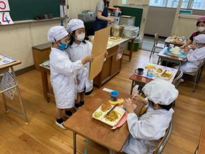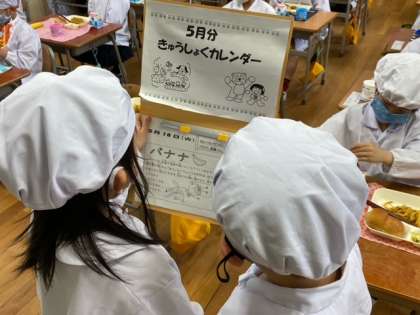 給食の挨拶をする前には当番が今日の給食のメニューを読んでお知らせをしてくれます。