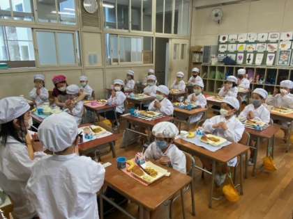 給食の配膳中はみんな静かに待つこともできています。1年生のみんな学校生活にもなれて、どんどん出来ることが増えてきてます!