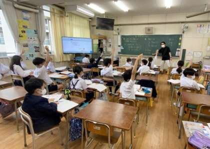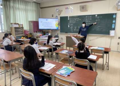 算数ではわり算の暗算についての学習をしました。習熟度別学習で2グループに分かれて学習をおこなっています。