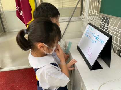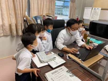 何かなと思ってのぞきにいくと、校長先生が出していた「なぞなぞ」の答えを直接伝えにきていました。