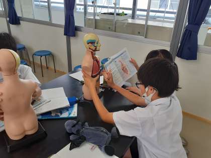 それぞれの臓器の働きを学習した後、人体模型を使って、身体のどの位置にあるのか、確認をしました。
