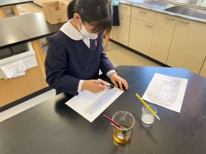 真っ白な「ひみつの手紙」に、ある液体を筆で塗っていくと文字や絵が浮かび上がってきました!