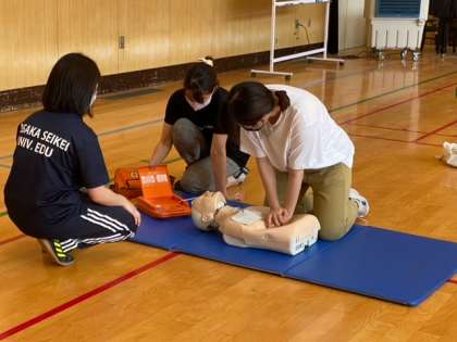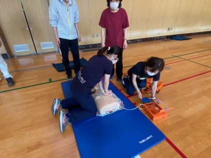 いつ、どこでどんな事故が起きてたとしても、慌てず対応できるように講習会を通して、AEDの使用法や心臓マッサージなどの方法を確認しました。