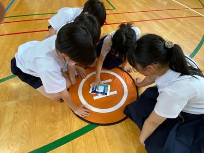 プログラムをするドローンでも、タブレットのプログラムミング方法を理解してサクサクと動かしていました。目的の輪をくぐり抜けて、スタート地にもどってくるためにはどうすればよいかグループで相談しながらとても上手にドローンを動かしていました。