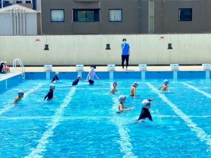 2年生も昨年、プールがなかったので、初めてのプールになります。1年生も2年生も何もかもが初めて!