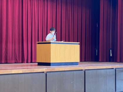 土曜日の「豊崎わくわくフェスティバル」の事についての話や、日曜日のソフトボールの試合についてのお話でした。みんなしっかり、自分の考えを堂々と言えていました。