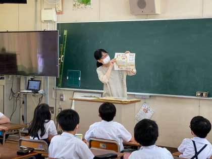 今日は中津小学校から栄養教諭の先生が来てくださり栄養指導をしていただきました。