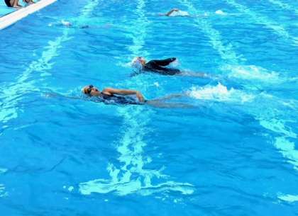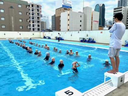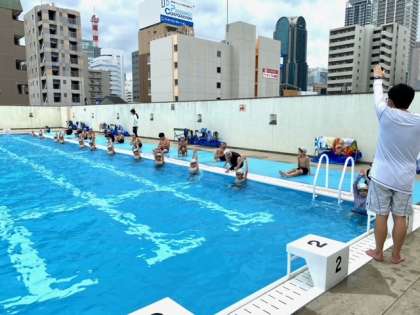 その後は蹴伸びからバタ足練習やクロールの練習、コース別に分かれて取り組んでいました。