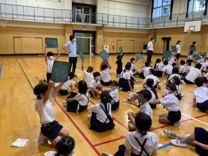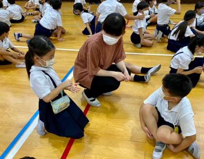 集会委員のメンバーはいつも、コロナ禍の中でみんなでできる遊びを工夫して考えてくれています。