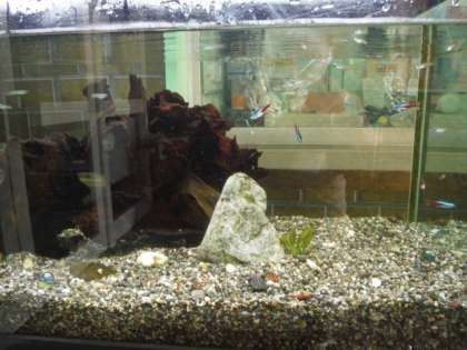 玄関の水槽に,新しい仲間が増えました。