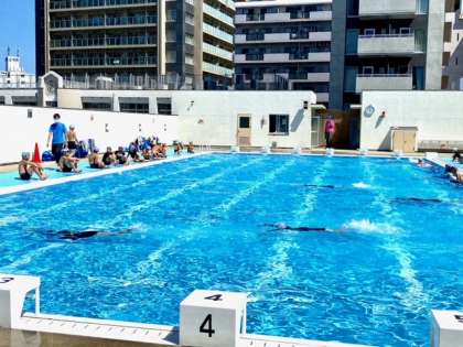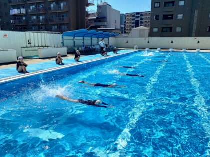 今日は初日なのでたくさんの児童が参加していました。蹴伸びやバタ足、クロールや平泳ぎの練習をしています。時間がある人はどんどん参加して思い切り体を動かしましょう!