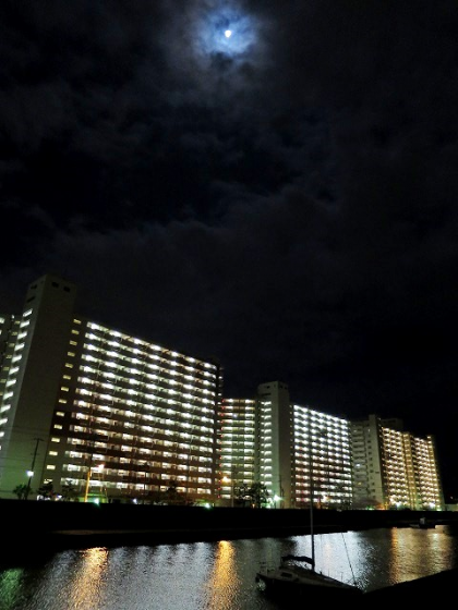 写真は,昨晩撮影したものです。雲間から輝く月明かりが美しいですね。