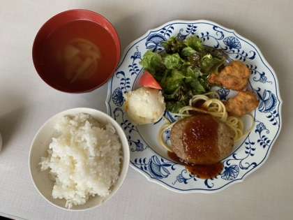 今日の夕食メニューはハンバーグと唐揚げです。