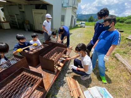 マッチをつけて火をおこすのが初めての子もいますが頑張って火をおこしています!