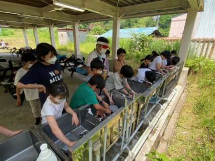 炭がこびりついていて、汚れをおとすのに苦労しています。最後の難関は職員さんによる最終チェックです!まだ合格した班は出ていません。