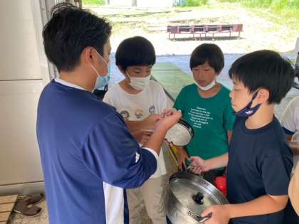 飯ごうすいさんで使った鍋や道具の後片付けです。