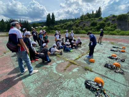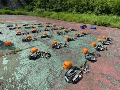 アルプスアドベンチャーは楽しいアクティビティーですが危険も伴うのでハーネスやヘルメットを付けてから行います。