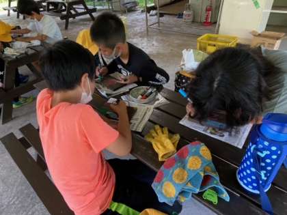 林間学習をテーマに思い出に残った事を描いていました。