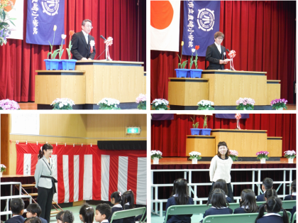 校長先生は,赤・白・黄色のチューリップを壇上に持ち込んで,お話しています。どんな話だったかな。