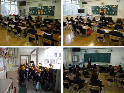 1年生は,はじめての学校生活です。今日は,あいさつと返事について,トイレの使い方,廊下の歩き方やロッカーの使い方などを教わりました。