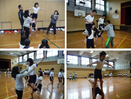 今日は,背の順で整列しなおし,肩車からサボテンの技に挑戦しました。