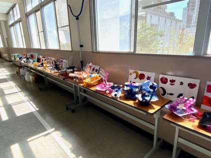 1・2年生の廊下にカラフルなふねが並んでいます!