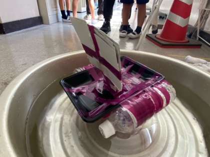 今日の5時間目には、ふねをプールに浮かべてレースをしたり遊んだりする予定です。