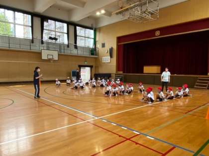 今日の体育は実習生の先生が授業をしてくださり「かけっこあそび」をしました。
