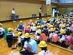 「おさない」「はしらない」「しゃべらない」のきまりを守り,安全に気をつけて素早く避難場所に集合することができました。
