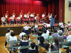 豊崎中学校の吹奏楽部によるミニコンサートでスタートした「豊崎こどもまつり」。
