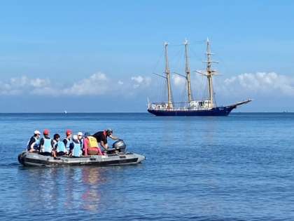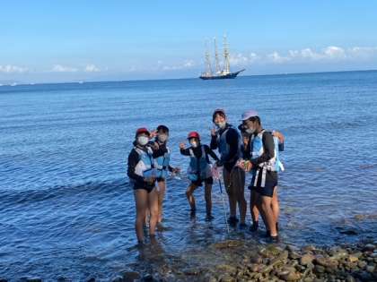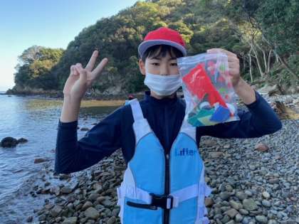 地ノ島に上陸し、プラスチックゴミを回収しました。ゴミの多さに子供たちは驚いていました。