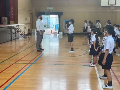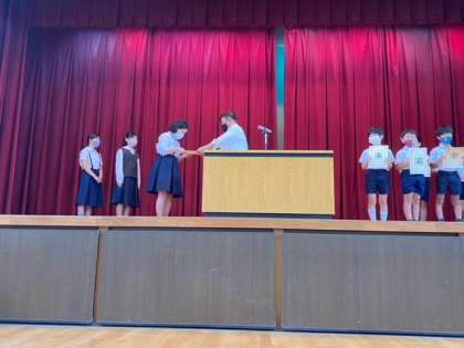 今日は児童朝会がありました。緊急事態宣言もあけたので、久しぶりに体育館での児童朝会でした。
