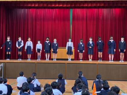 今日の児童集会では後期代表委員会のメンバー紹介がありました。一人一人これから代表委員として頑張りたいことを発表してくました。