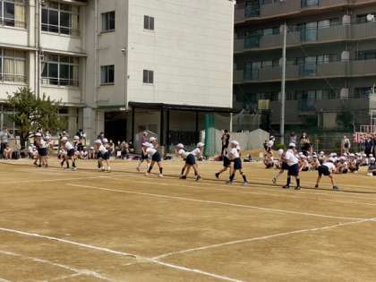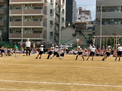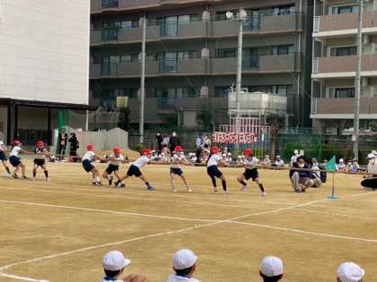 3、4年生のつな引きではみんな力いっぱいつなを引きました。