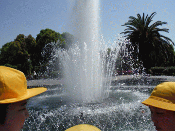 ときおりかかる噴水の水しぶきが気持ちよかったですね。