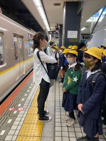 奈良公園に向かいます。ただいま近鉄難波駅で電車待ちです。天気もよく遠足日和になりそうです。