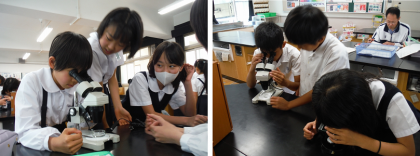 昨日のメダカの卵が気になって仕方がないようす。理科室に来るなり,メダカの水槽に吸い寄せられるように集まっています。