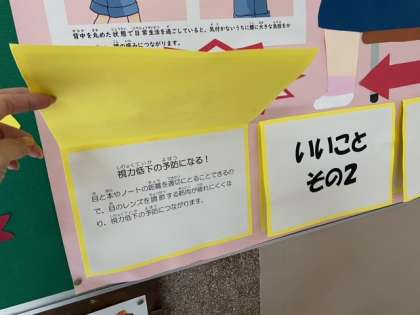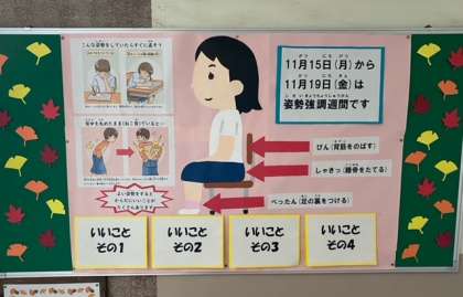今週は姿勢強調週間です。玄関入ってすぐの掲示板に姿勢についての掲示がされています。