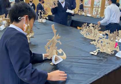 出来上がった作品をどのように掲示するか、どこからみてもらうのが一番良いか、ひとりひとり考えながら展示をしていました。