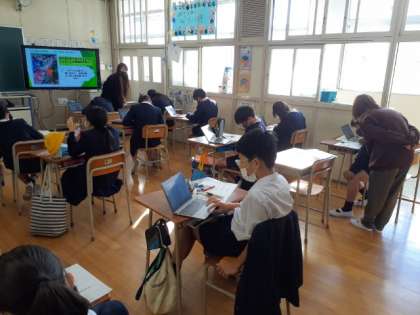 今日の図工は、「色や形に気をつけて2枚の絵を比べながら、作品のよさや美しさを感じとろう」を目標に鑑賞の授業を行いました。