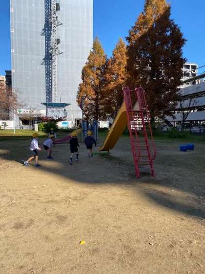 落ち葉を見つけてから、公園で遊びました。広い公園で、楽しく遊ぶことができました。