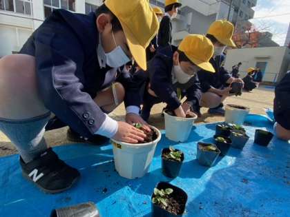 3・4年生も苗の植えかえを行いました。