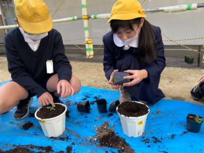 今回みんなが植え替えた苗は、管理作業員さんが種から育ててくれた苗です。次はひとりひとりが責任を持って、綺麗な花を咲かせるように育てて欲しいと思います。