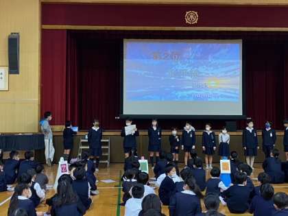 今日の児童集会は新聞・放送委員会の発表でした。