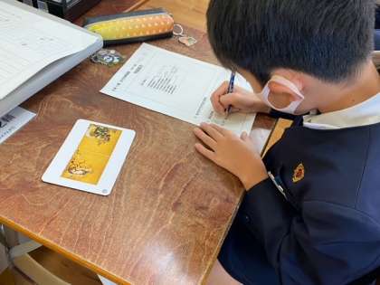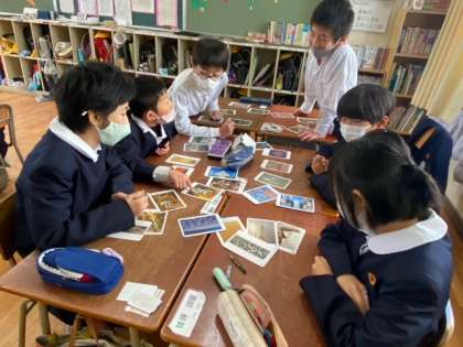 今日の図画工作の鑑賞では32枚のアートカード中から自分のお気に入りの1枚を選び、そのカードの作品紹介を行いました。