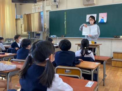 お昼からの終業式なので、1年生は式の前に通知表を渡しました。1学期と少し通知表も変わるので、その説明をしてもらいました。みんな担任の先生から一人一人手渡されていました。
