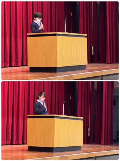 児童の意見発表では3学期の目標についての発表がありました。気持ちを新たに、残り3ヶ月間過ごしてほしいと思います。